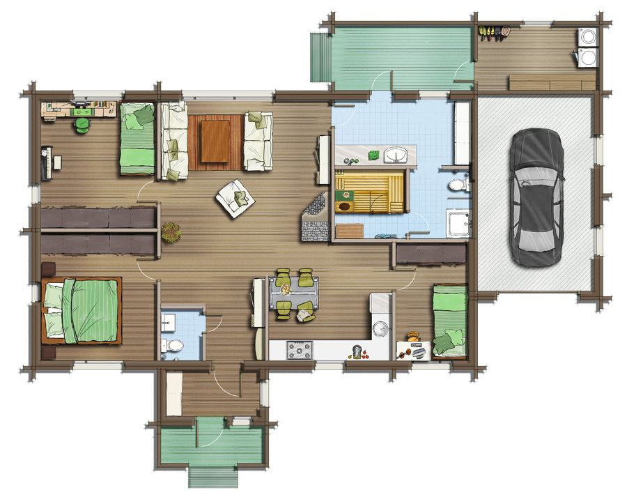 – Amplio salón con chimenea, distribuido en varios amibientes, todos ellos con salida al porche a través de grandes ventanales que aportan mucha luminosidad a la estancia.
